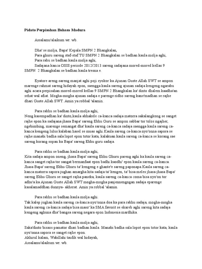 Pidato bahasa madura tentang pendidikan. Pidato bahasa madura judul cinta roslullah saw. Ceramah bahasa madura kh musleh adnan terbaru 2020. Kumpulan berita antara news menyajikan informasi terkini tentang pidato bahasa madura di indonesia dan dunia. Pidato bahasa madura pidato bahasa madura perpisahan sekolah ria pidato bahasa madura 1 contoh pidato .